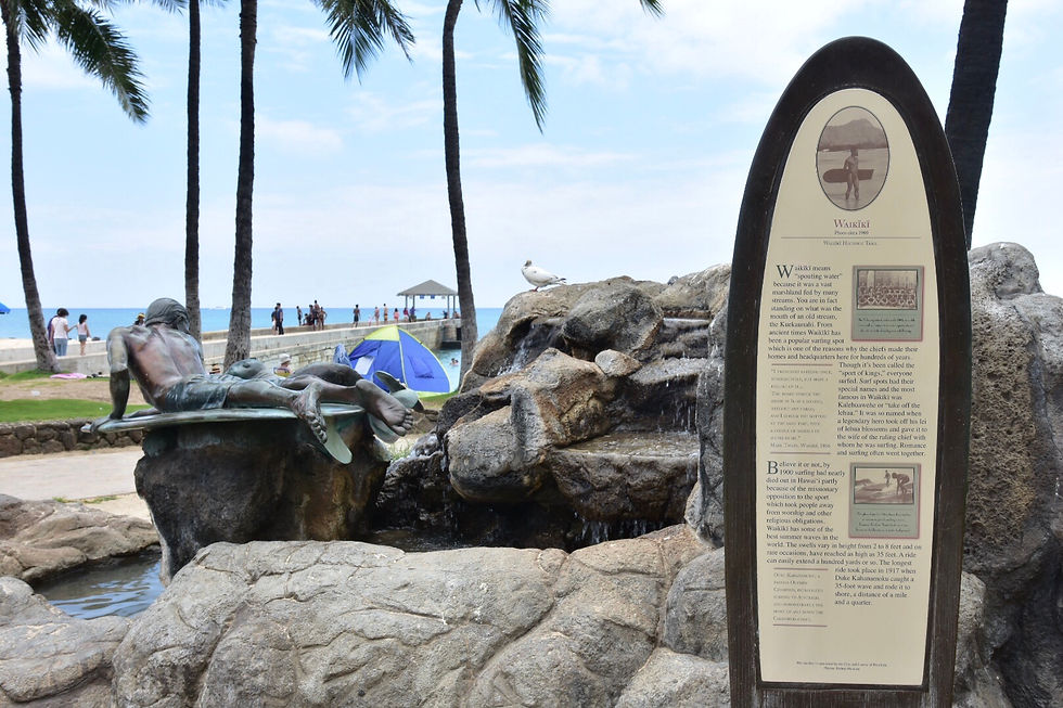 Erst am angrenzenden Kuhio Beach beginnt die Strandpromenade mit ihren Wahrzeichen.